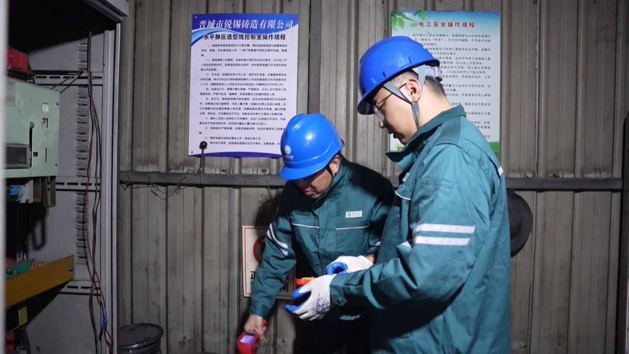 在晉城市銳錫鑄造有限公司,檢修人員進入配電室、變壓器臺區等關鍵區域,對高低壓配電設備、線路敷設、繼電保護、接地裝置等用電設備進行拉網式、全覆蓋排查。通過紅外測溫、絕緣檢測等專業手段,重點排查設備發熱、線路老化、接線松動、負荷不匹配等安全隱患。并針對企業生產用電特點與實際需求,提供“一對一”用電指導,講解安全用電、節約用電、科學避峰等知識,協助企業完善用電管理制度,切實把用電風險消除在萌芽狀態。